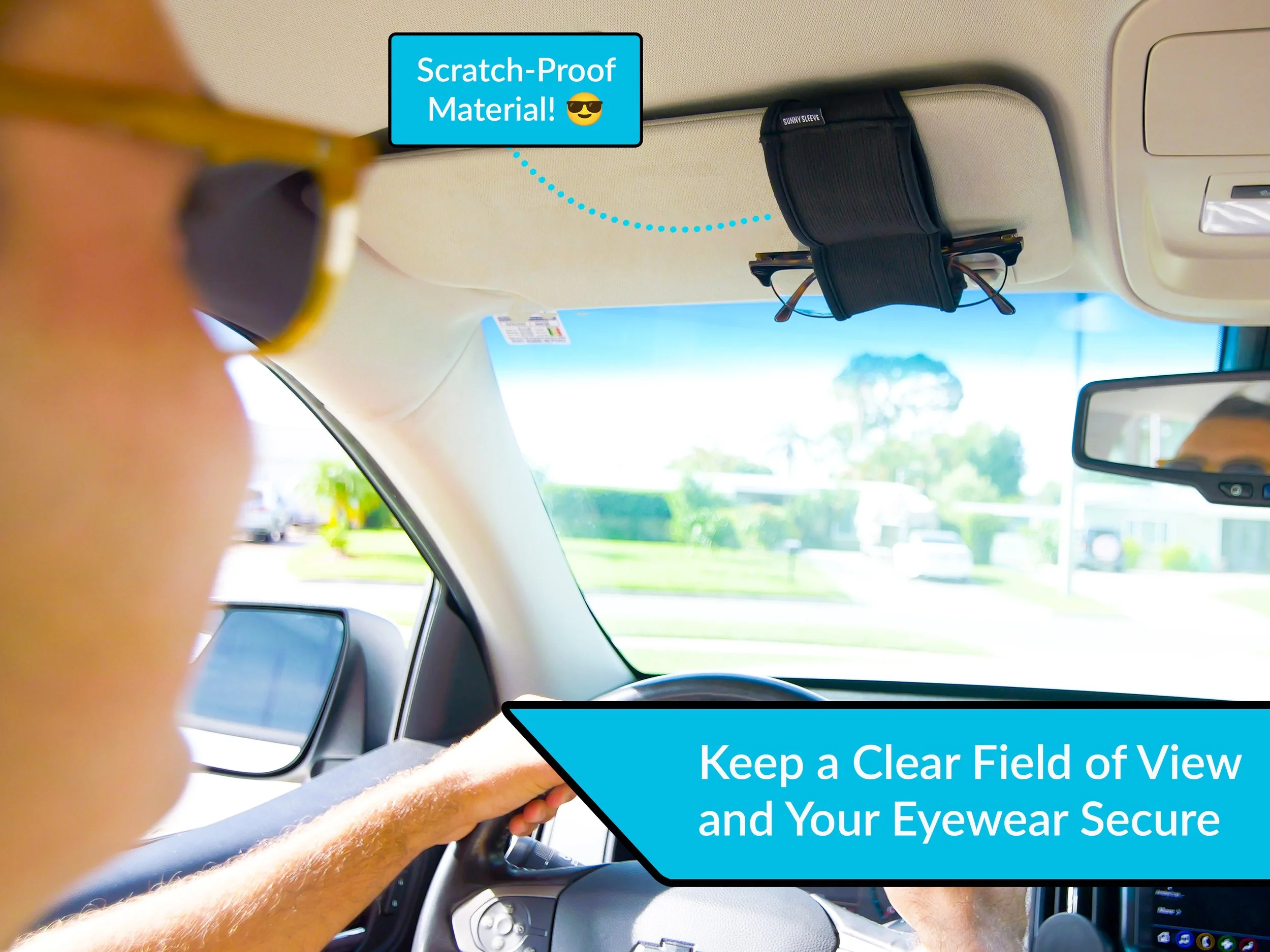 We landed on a two-way stretch fabric to have the flexibility to fit securely on most vehicle visors, as well as accommodate most common sizes of eyewear (excluding shield-type glasses i.e. “Pit Vipers”).